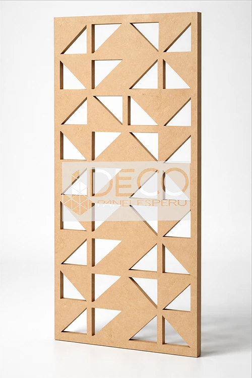 Paneles calados en MDF de alta densidad para uso interior, disponibles en 15, 18 y 25 mm de espesor. Se entregan sin acabado, listos para pintar o lacar según el estilo del proyecto. Ideales para divisiones, revestimientos y elementos decorativos interiores.